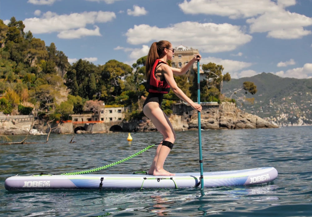 Le tavole da stand up paddle board Jobe disponibili per il noleggio permettono di accogliere ogni livello di preparazione, dal neofita a chi già pratica questo sport con facilità.